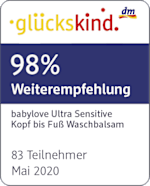 Der babylove Ultra Sensitive Kopf bis Fuß Waschbalsam pflegt die zarte Babyhaut mit 1/3 feuchtigkeitsspendender Körperlotion. Die besonders milde Pflegerezeptur mit Mandelöl, Panthenol sowie Sonnenblumenöl schützt die Haut vor dem Austrocknen und hält sie in ihrem natürlichen Gleichgewicht. Der hohe Anteil von Körperlotion spendet bereits während der Reinigung intensiv Feuchtigkeit – für fühlbar streichelzarte Haut. Der Ultra Sensitive Kopf bis Fuß Waschbalsam wurde getestet und empfohlen vom Deutschen Allergie- und Asthmabund.